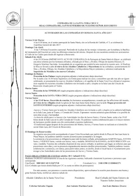 El presidente de la Cofradía de la Santa Vera Cruz y de la Real Cofradía del Santo Entierro de Nuestro Señor Jesucristo, en nombre de la Junta Directiva, convoca a todos los hermanos de ambas entidades a la asamblea general que se celebrará el día 24 de Marzo de 2.017, a las 20:45 horas, en el centro parroquial de Santa María, sito en la Ronda del Cabildo, nº 3.